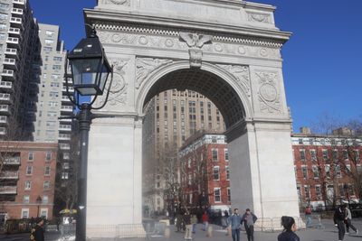 - Washington Square Arch - Designed by famed architect, Stanford White, (1891-92), it is considered one of the world's finest triumphal arches, built to commemorate the Centennial of George Washington's Inauguration as first President of the United States. Inspired by Paris's Arc de Triomph, the site is popular for mass demonstrations, students, concerts, street performers and speeches promoting various social causes.